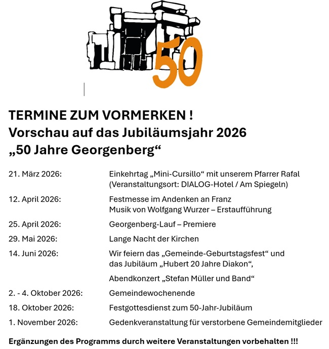 Hier eine Vorschau auf Termine im Jubiläumsjahr 2026 ...