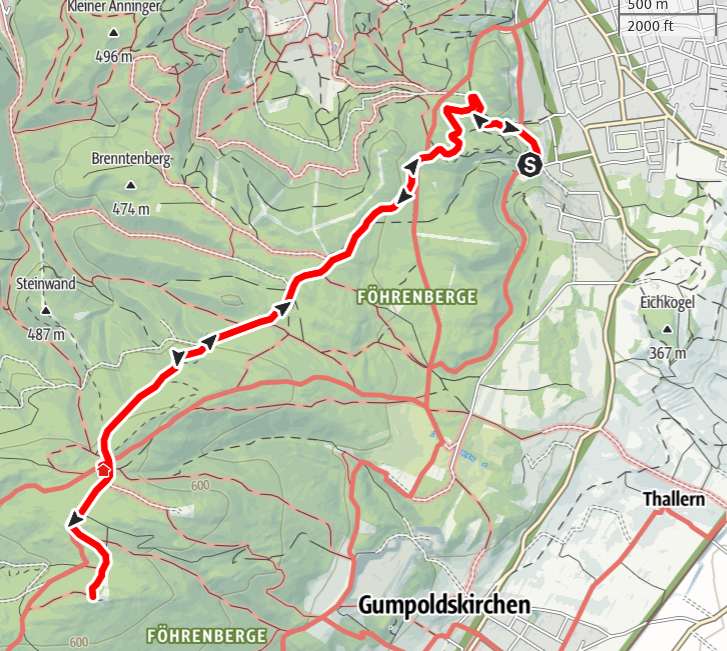 Wanderroute: Prießnitzgasse Parkplatz – Forststraße – Breite Föhre – Anninger – Aussichtswarte – Prießnitzgasse
